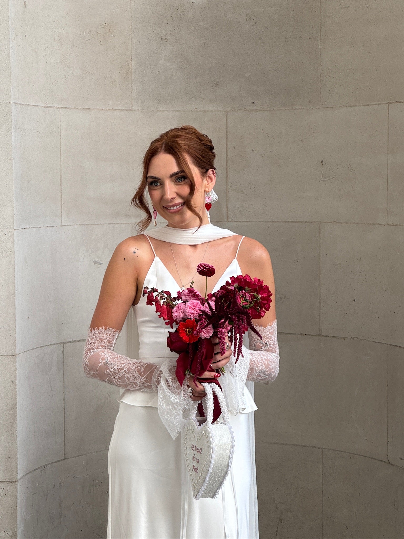 This exact bag was worn by Bluie’s founder Hayley on her own wedding day, making it one of the pieces that inspired the entire Bluie collection.