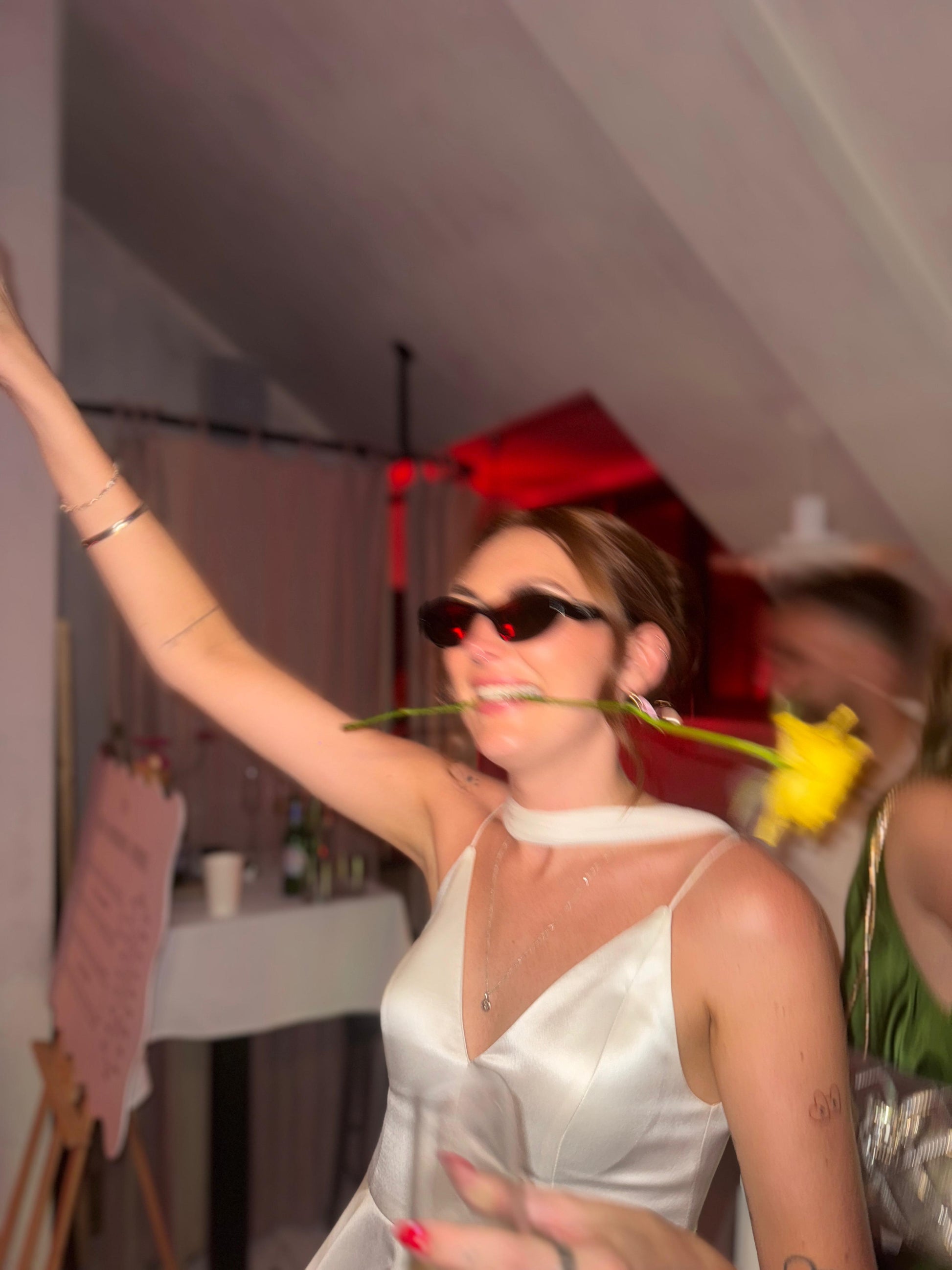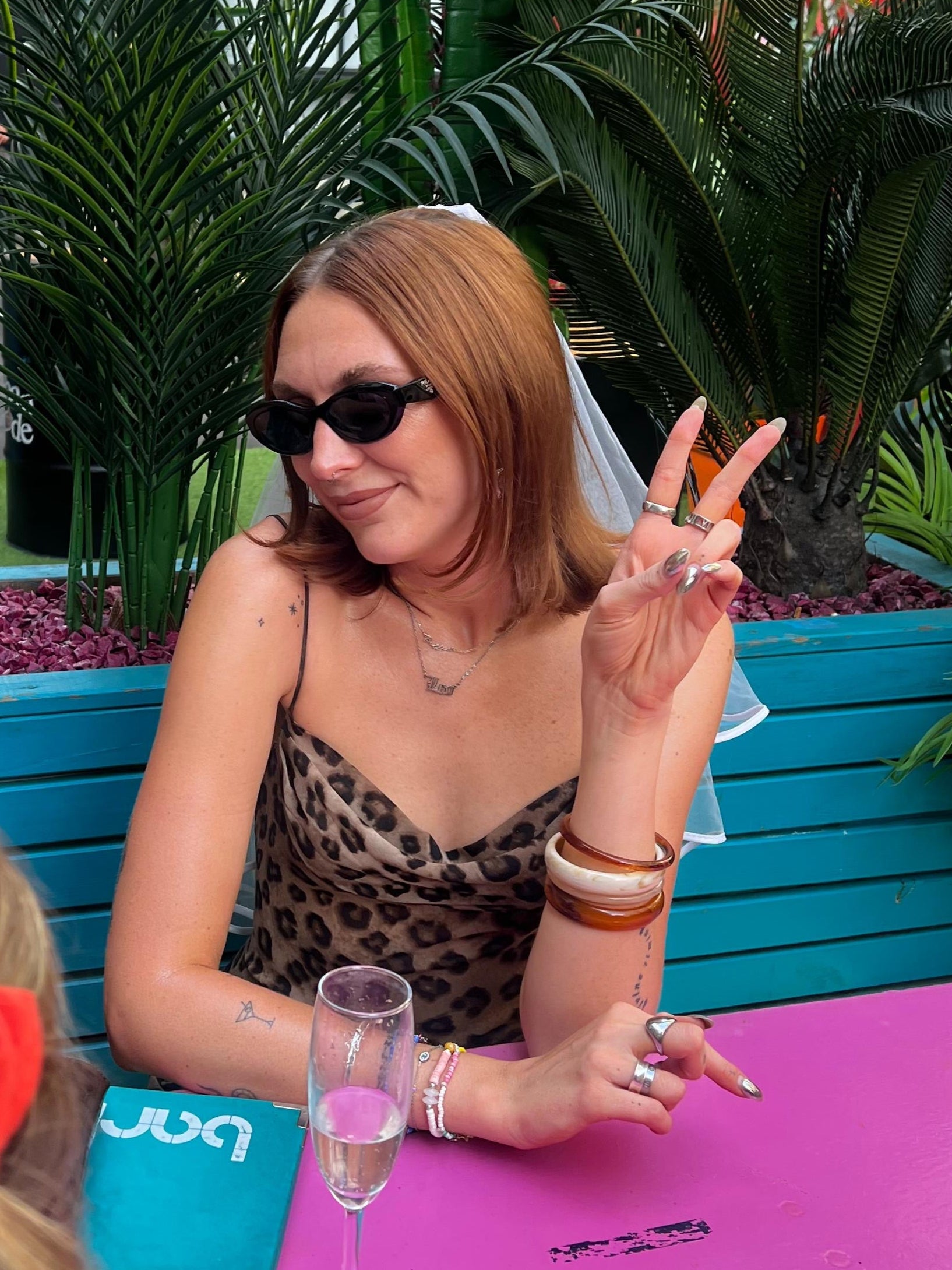 It’s giving Charli XCX meets Old Hollywood. These black cat-eye Prada sunglasses are bold, sculptural, and unapologetically bridal with an edge. The thick black acetate frames and sharp angles elevate any look - whether you're making an entrance at your registry, heading to your hen, or stepping off the plane on honeymoon.